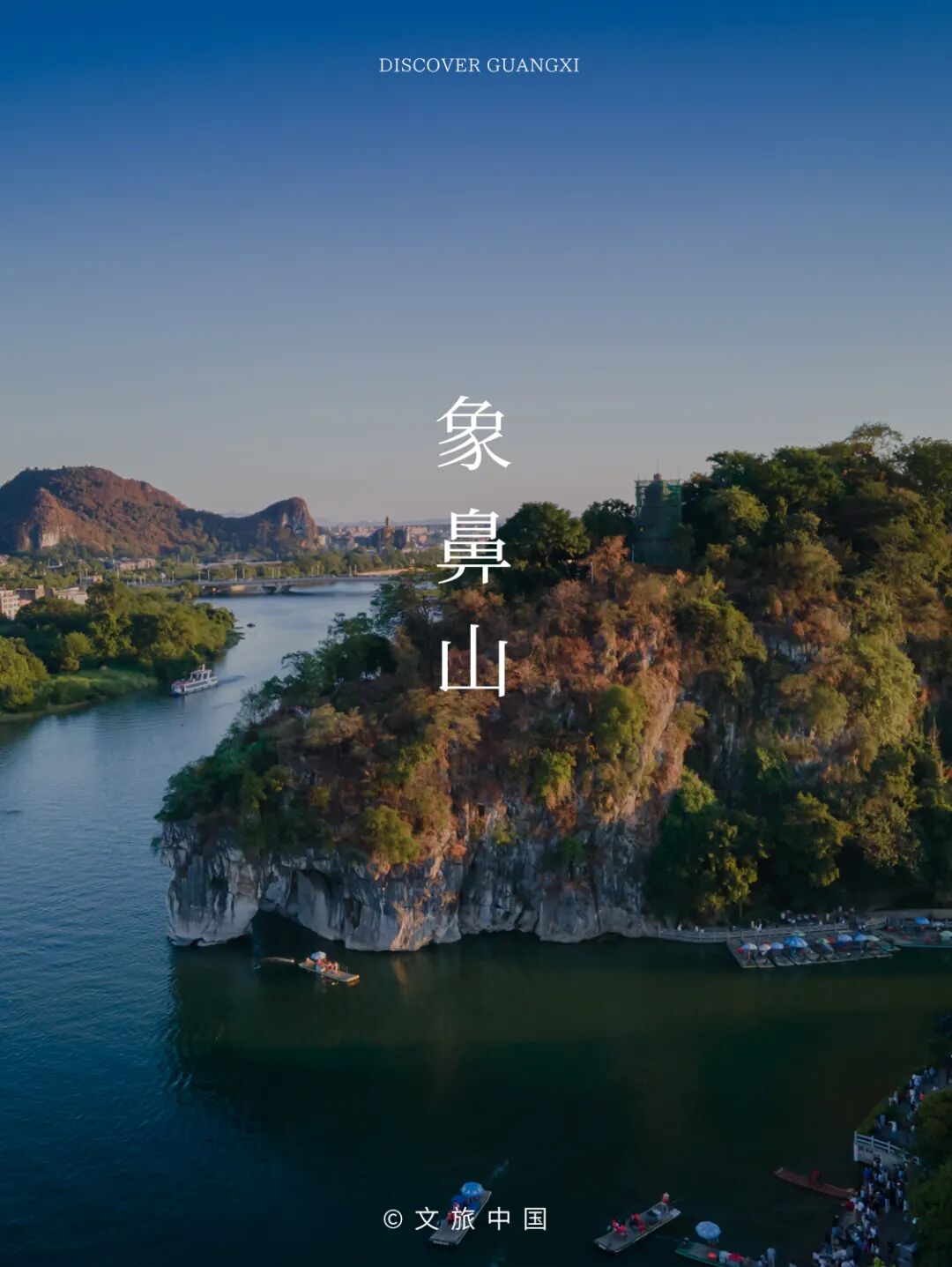 这其中,最引人入胜的莫过于桂林的城徽——象鼻山。它宛如一头巨象临江而立,长长的鼻尖探入漓江碧波,仿佛在畅饮甘泉。传说中,它原是帮助百姓耕作的神象,为守护这片土地而化作青山,永远矗立于此。