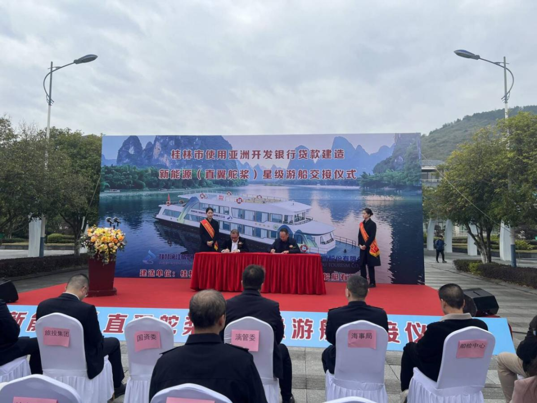 据了解,该新能源直翼桨星级游船项目依托亚洲开发银行贷款资金支持,实施过程中严格对标国际金融机构相关要求,规范开展项目管理与资金使用,全面践行绿色低碳、安全高效的发展理念,是漓江旅游领域新能源船舶应用的重要实践成果。船东方代表、桂林漓江旅游投资运营有限责任公司总经理梁磬清表示:“此次正式交接,标志着亚洲开发银行贷款支持项目取得阶段性成果。公司将严格落实亚行贷款项目后续管理及绩效要求,充分发挥新能源直翼桨船型的技术优势,持续提升漓江旅游整体服务水平与运营效能。”